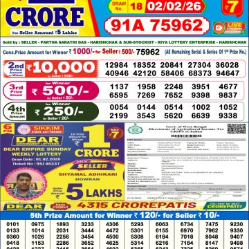 • Dear Lottery Result 02.02.26 6PM Today Dear Day Result