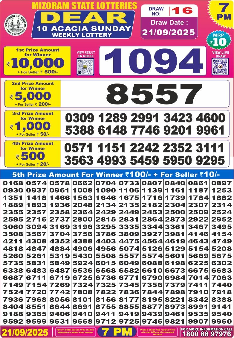 Dear Super Lottery Result 7 PM 21.09.25 Share: XFacebookPinterestRedditVKDiggLinkedinMix Related Results 0 39 Punjab State Dear Diwali Bumper 31.10.2025 Lottery. Today Result. 0 62 Dear Super Lottery Result 7 PM 20.09.25 0 80 Dear Super Lottery Result 7 PM 19.09.25 0 67 Dear Super Lottery Result 7 PM 18.09.25