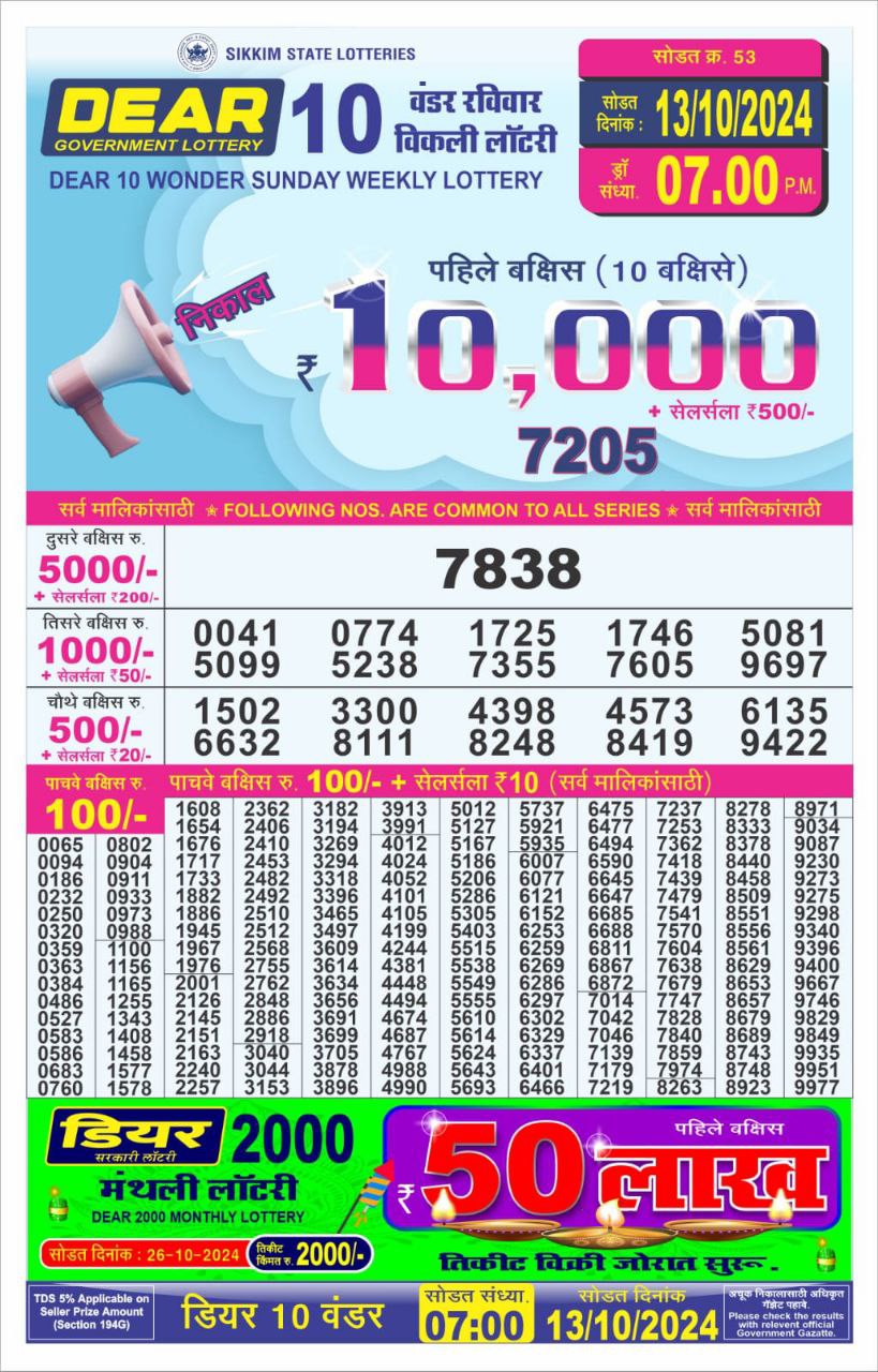 Dear10 7pm lottery result 13-10-24 Share: XFacebookPinterestRedditVKDiggLinkedinMix Related Results 0 65 Dear 2000 Monthly Lottery Result Declared 08.11.25 0 122 Dear 10 lottery result today 7 pm 04/06/2025 Declared 0 134 Dear super lottery result today 7 pm 04/06/2025 Declared 0 132 Dear super lottery result today 7 pm 03/06/2025 Declared