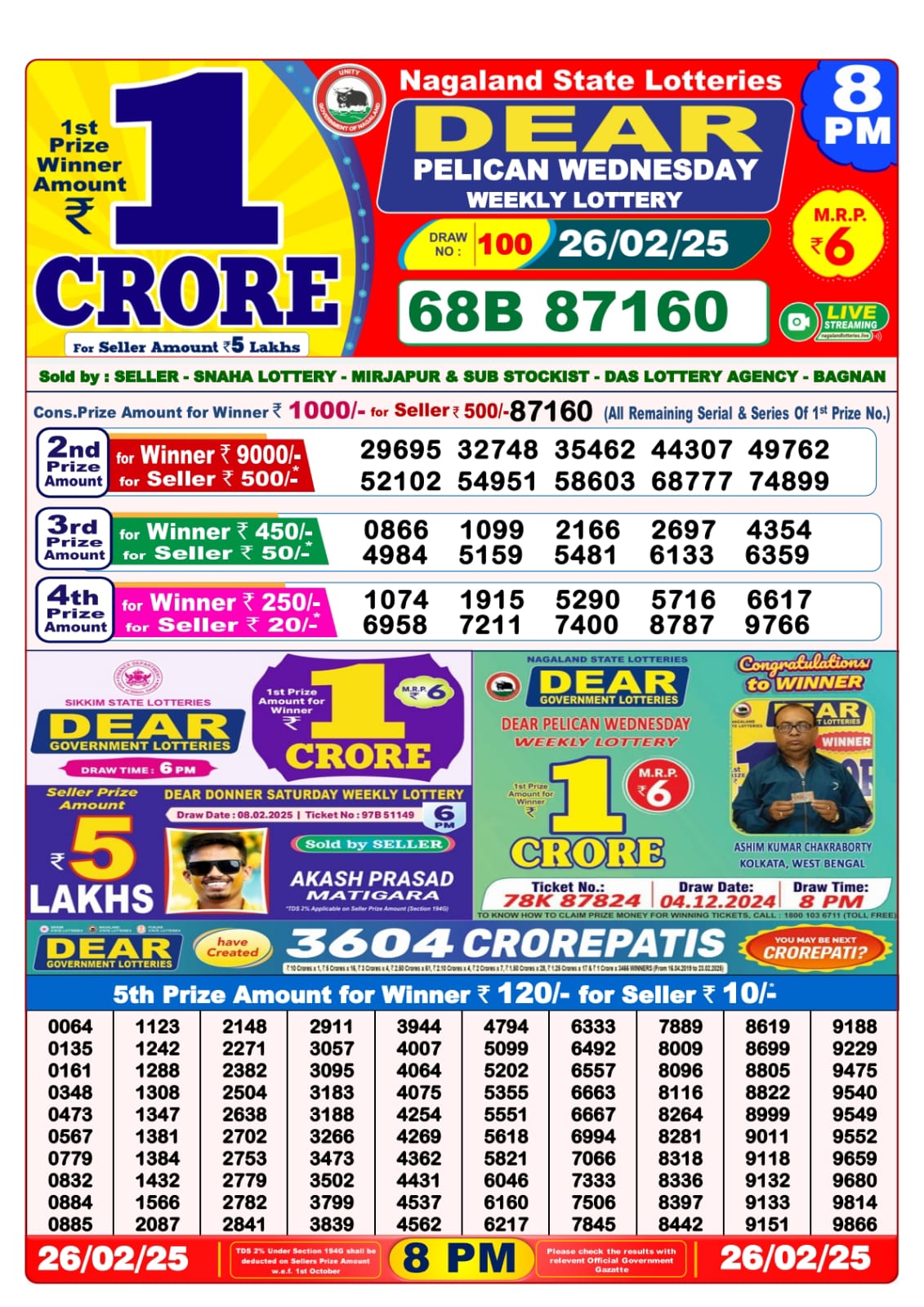 Dear lottery result today 6 p.m. 26.2 25