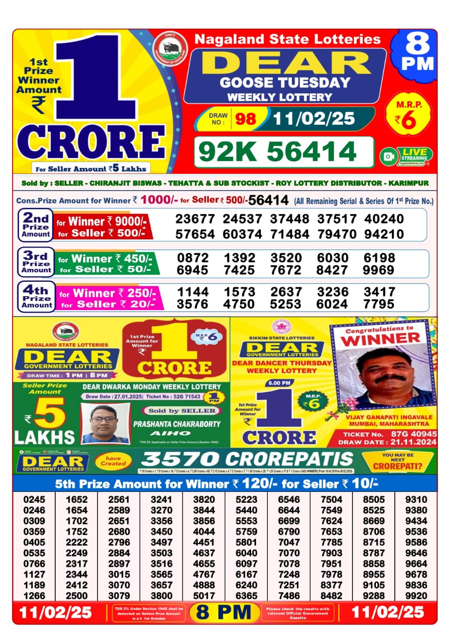 Dear lottery result today 8 p.m. 11.2 25