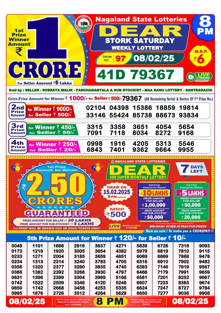Dear 10 lottery Result today 1.30pm 8.2.25