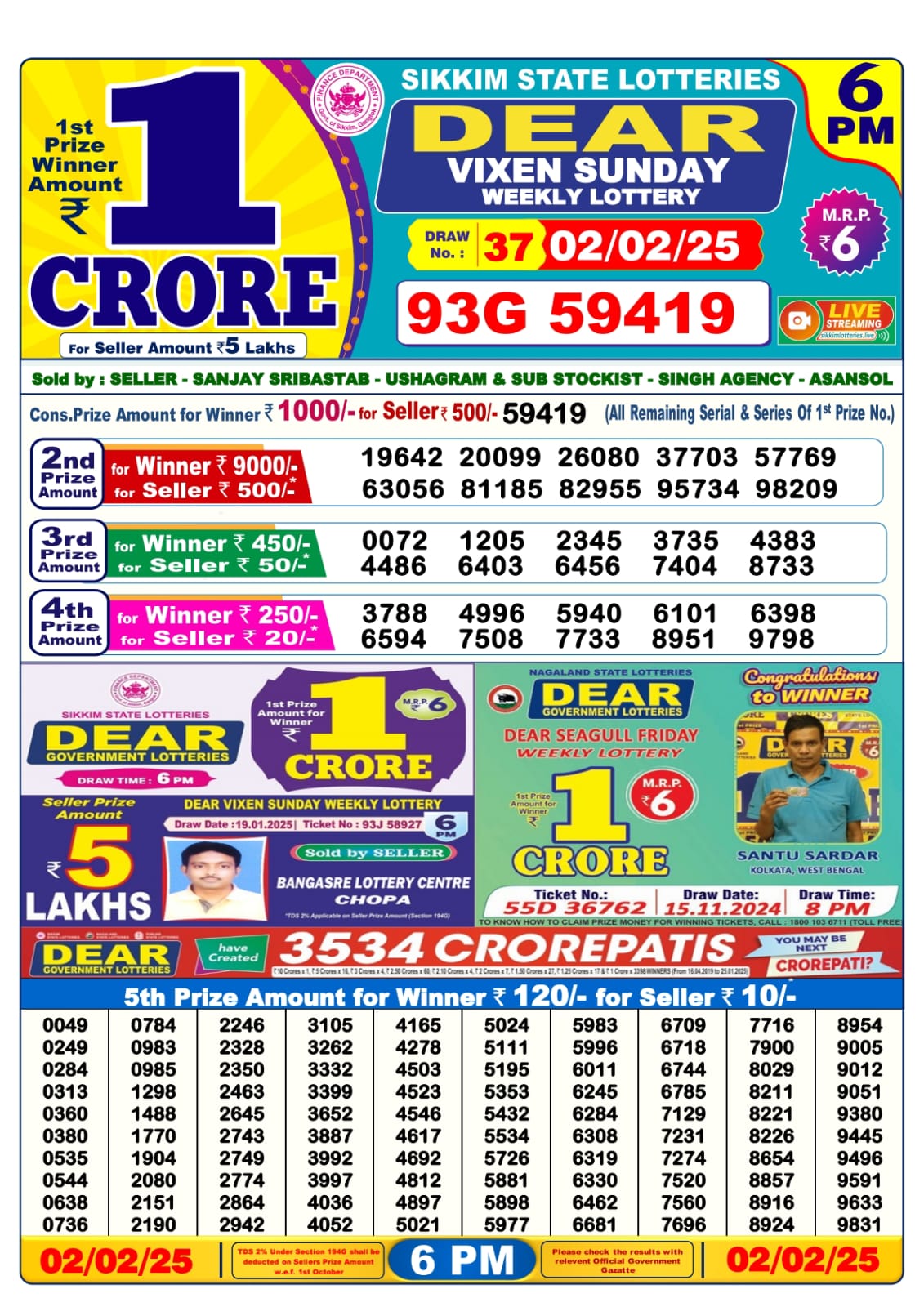 Dear lottery result today 6pm 2.2.25