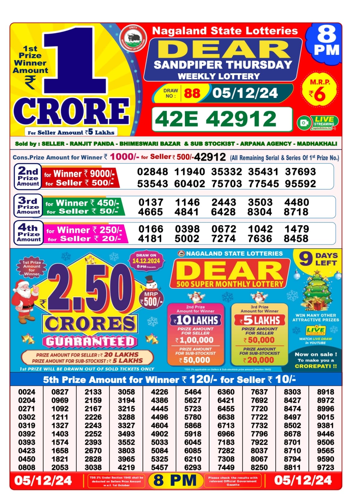 Dear 10 lottery Result today 1.30pm 5.12.24