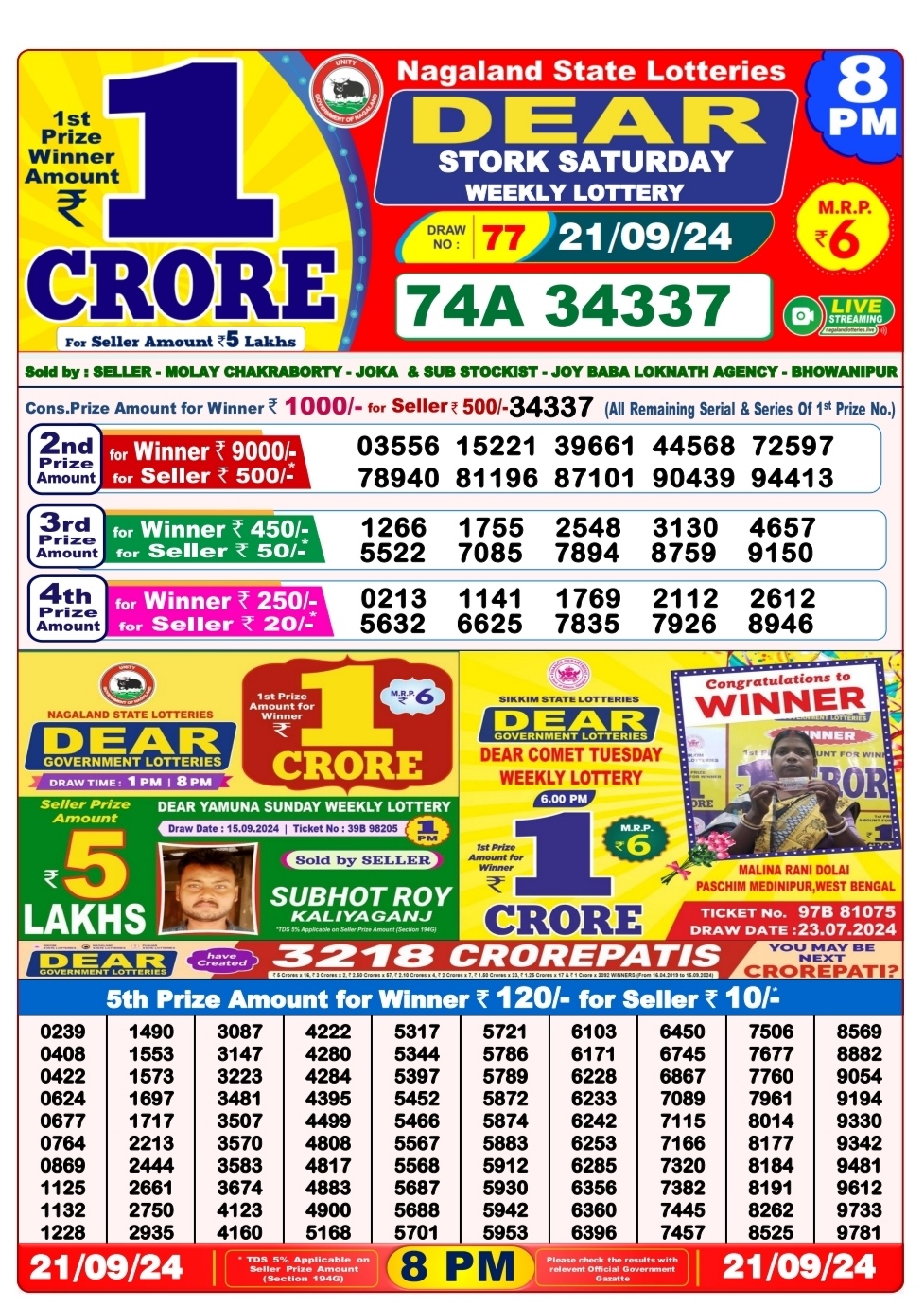 Dear super 7pm lottery result 21-9-24