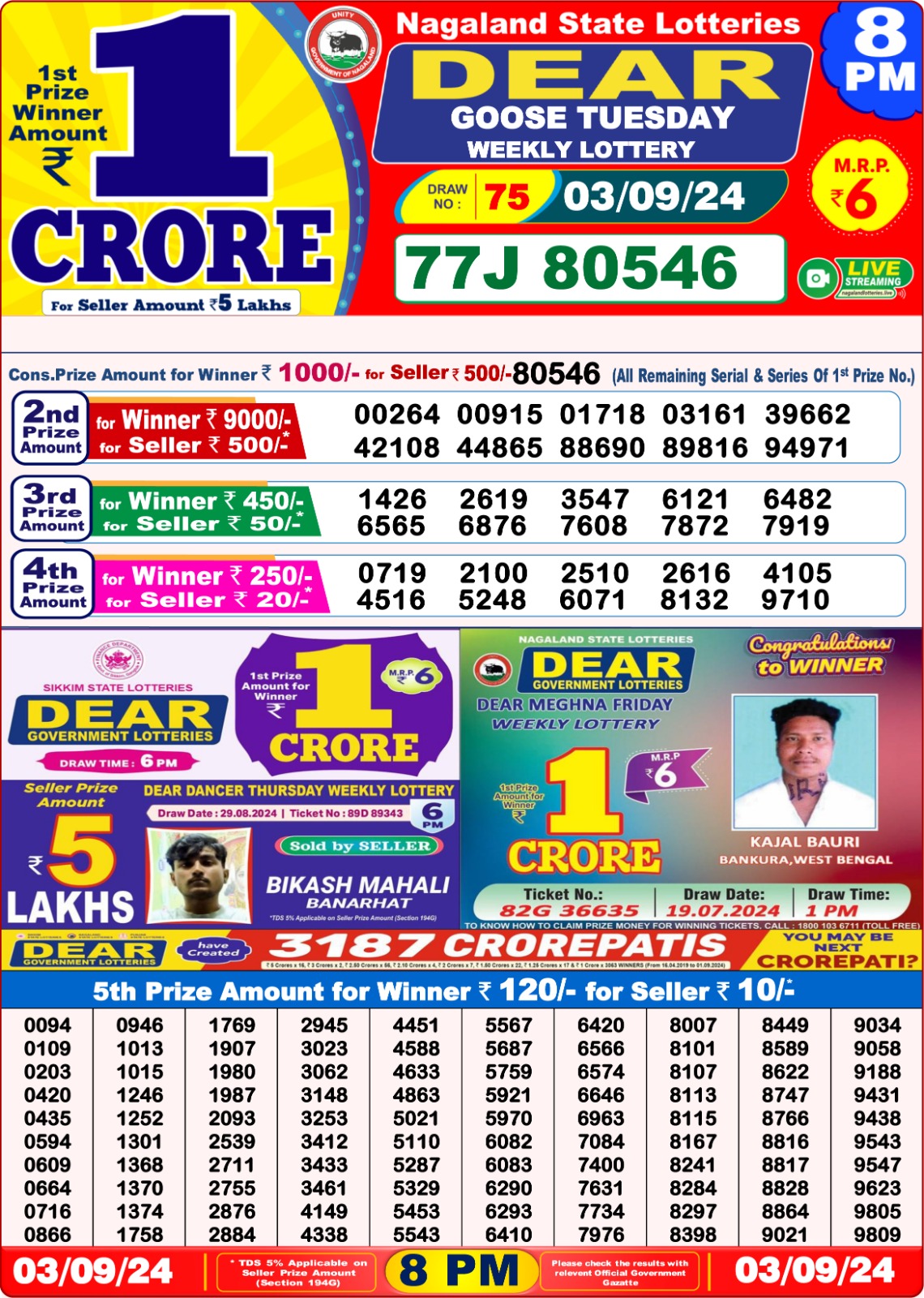 Dear Lottery Result 09.11.25 6PM Today Dear Day Result