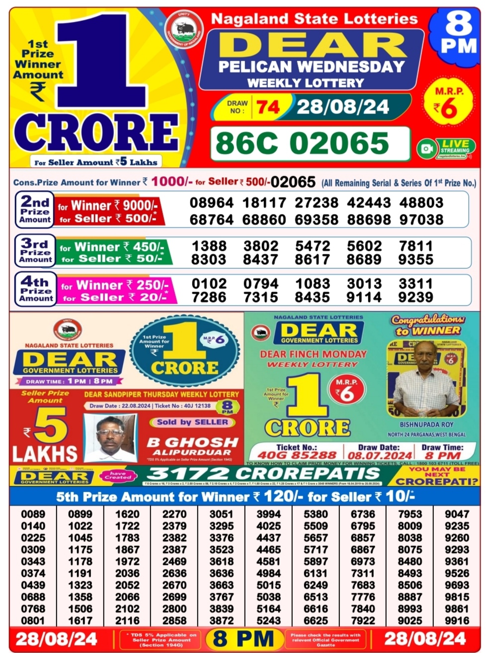 Dear 1pm lottery result 28-8-24
