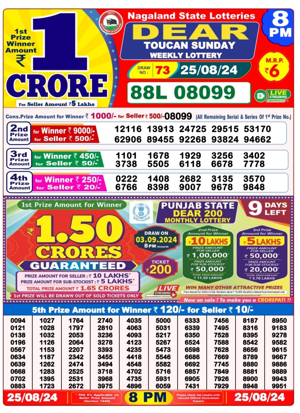 Punjab State Dear 50 6 PM Lottery Result 08.11.25