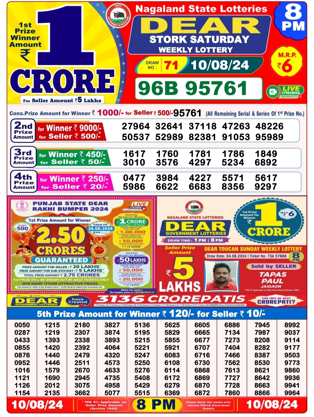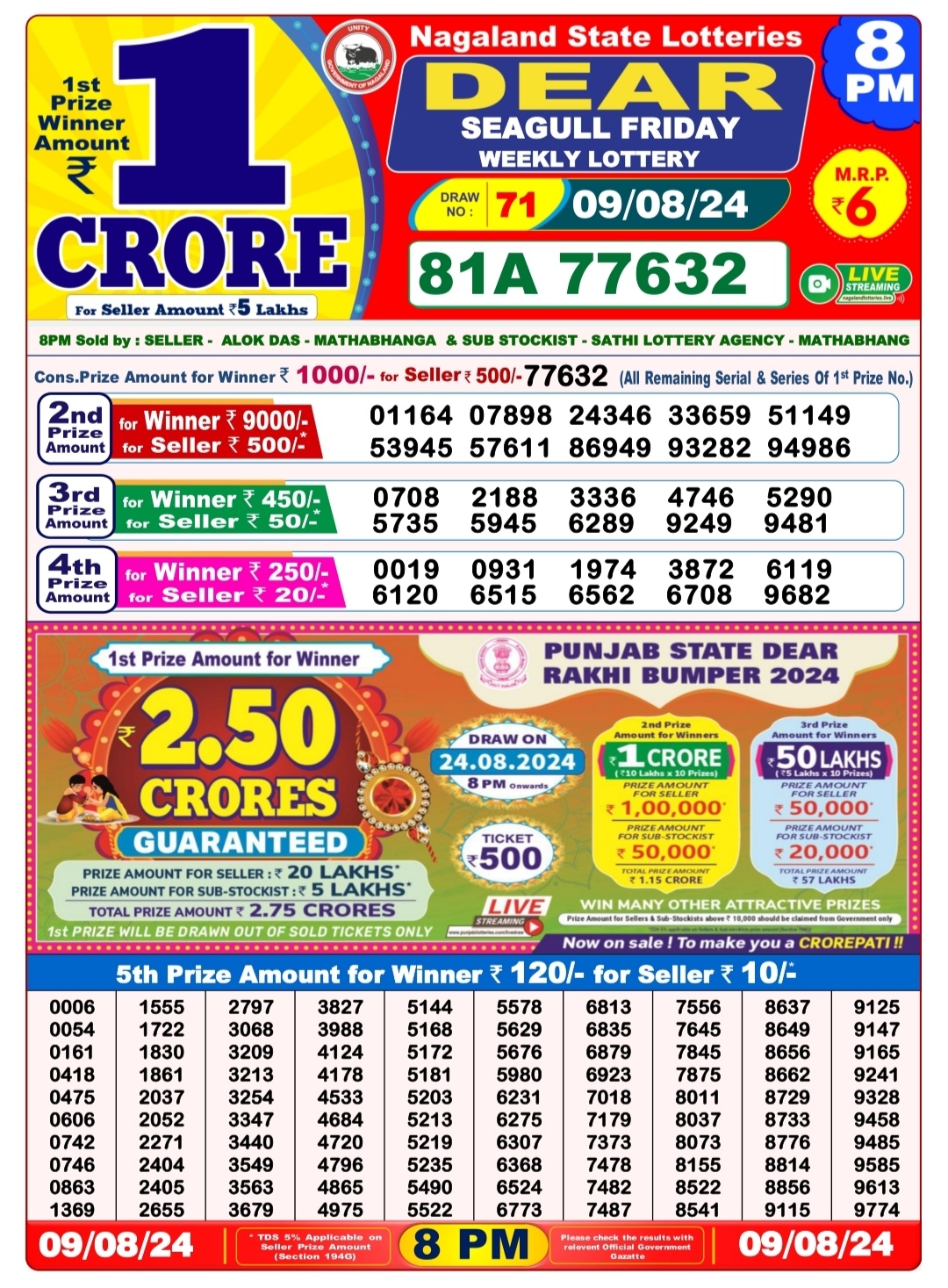 Dear Lottery Result 07.11.25 1PM Today Dear Morning