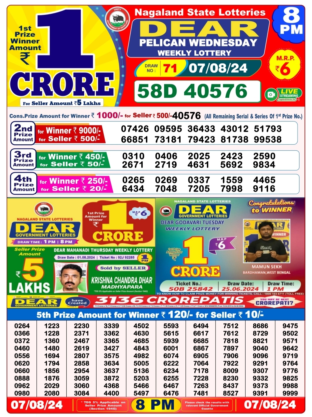Dear 6pm lottery result 7-8-24