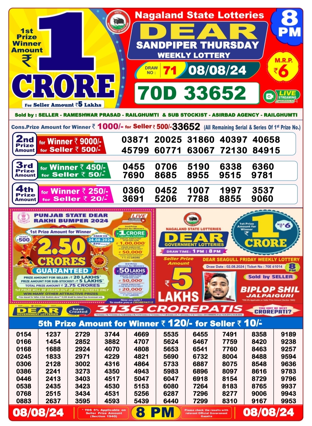 Dear 7pm lottery result 8-8-24