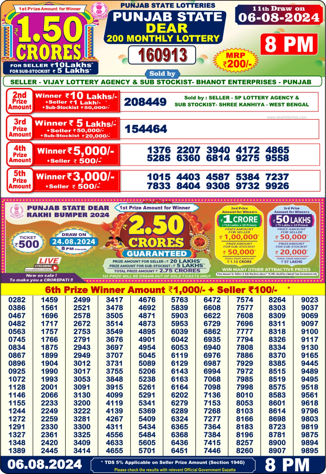Punjab State Dear 50 6 PM Lottery Result 07.11.25