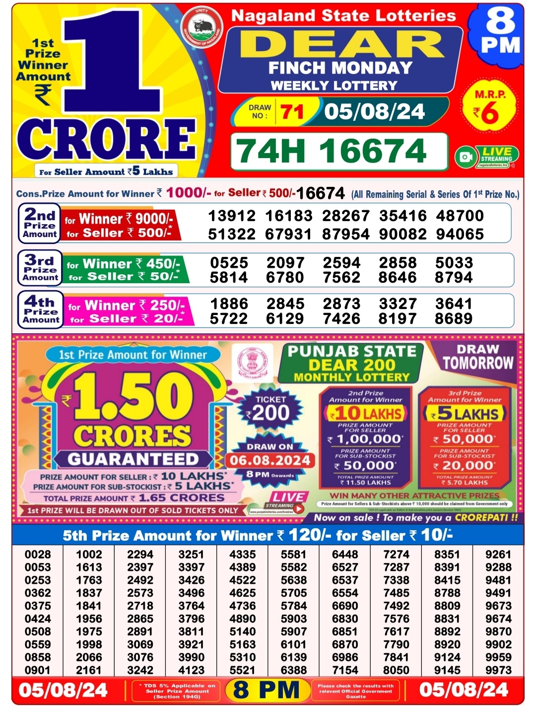 Dear Lottery Result 07.11.25 6PM Today Dear Day Result