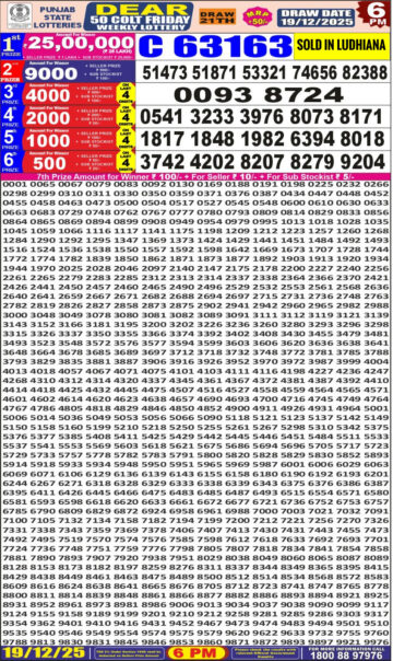 Punjab State Dear 50 6 PM Lottery Result 19.12.25