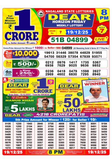 Dear Lottery Result 19.12.25 1PM Today Dear Morning