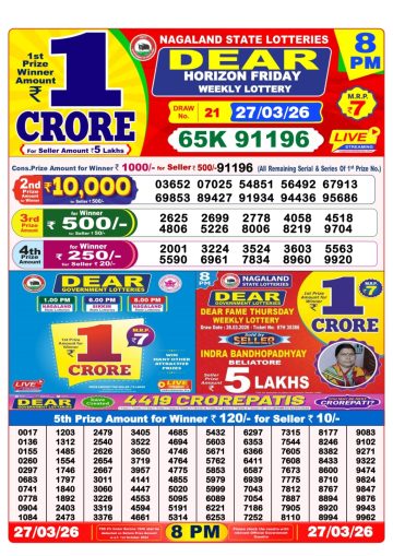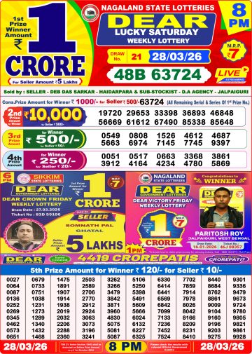 Dear Lottery Result 28.03.26 6PM Today Dear Day Result