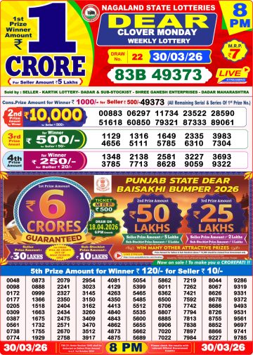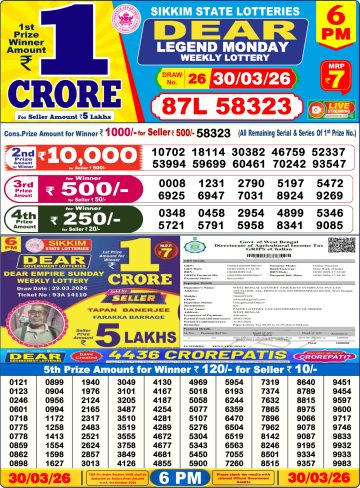 Dear Lottery Result 30.03.26 6PM Today Dear Day Result