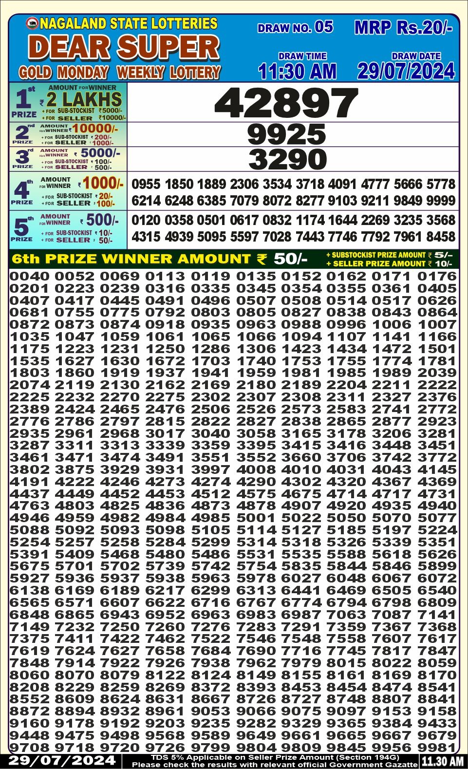 Dear Lottery Result 06.11.25 6PM Today Dear Day Result