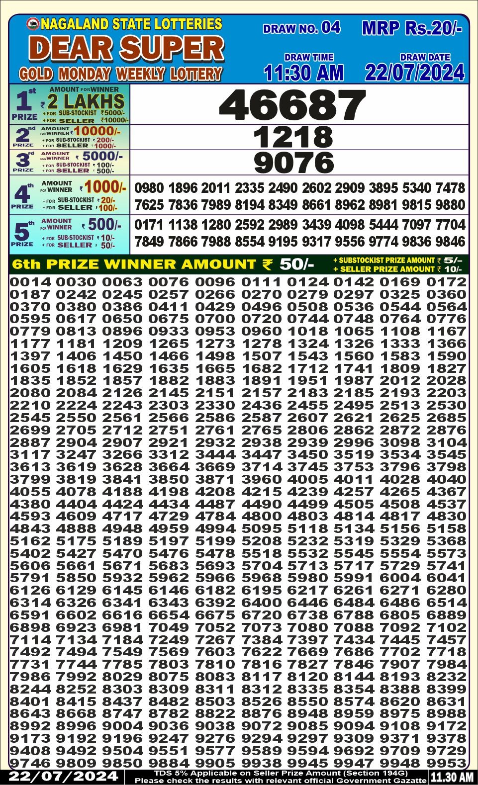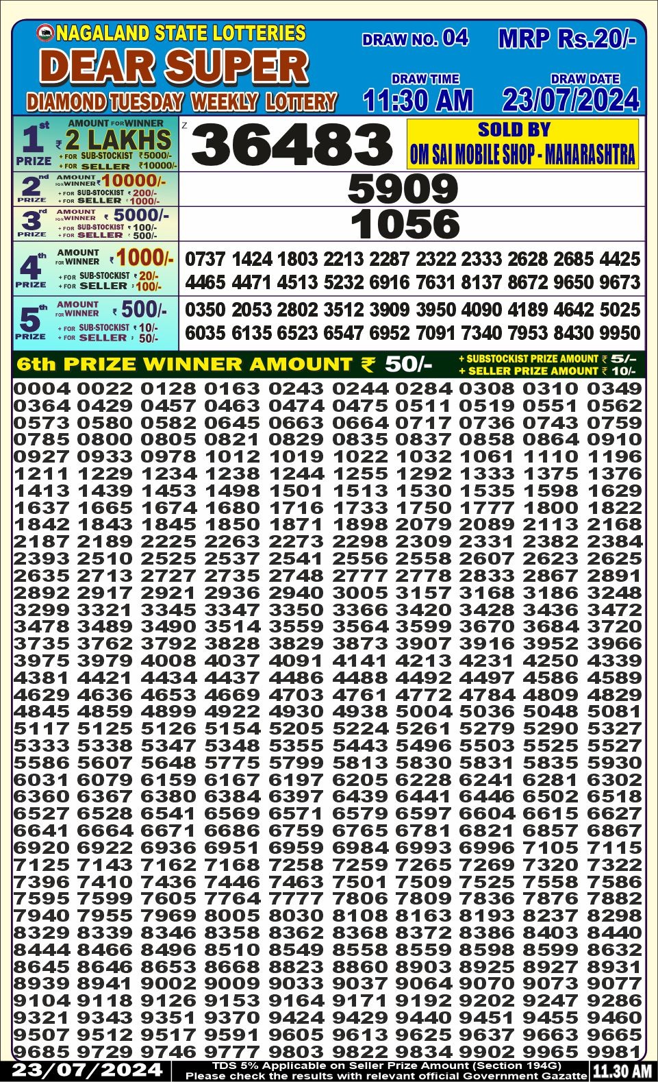 Dear Lottery Result 05.11.25 6PM Today Dear Day Result