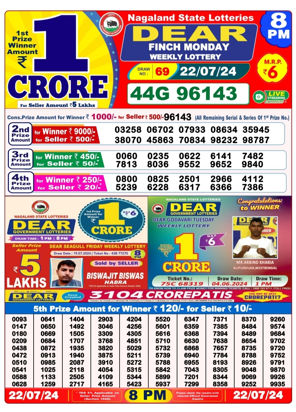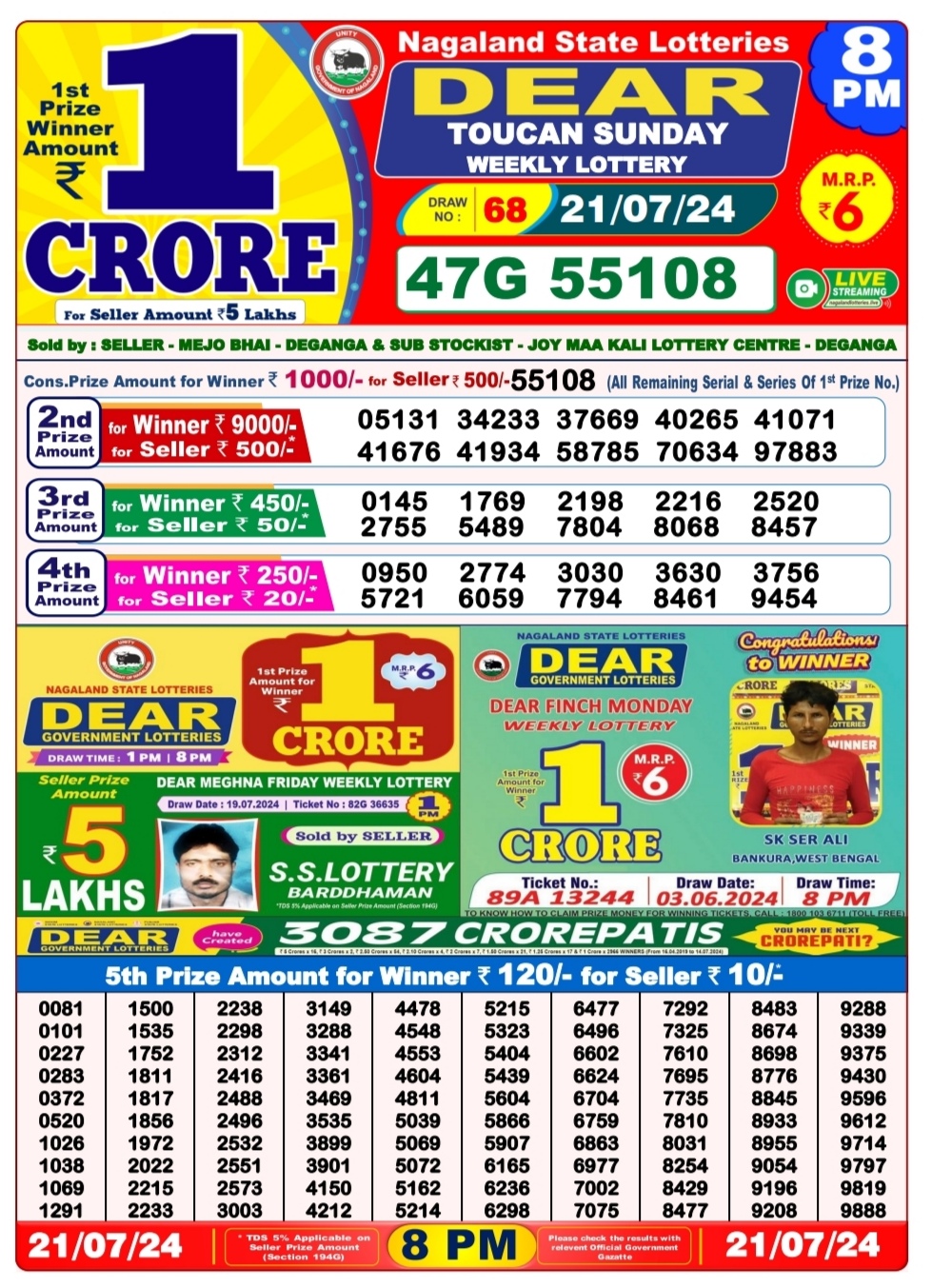Dear Lottery Result Today 1 PM 6 PM 8 PM Lottery Sambad