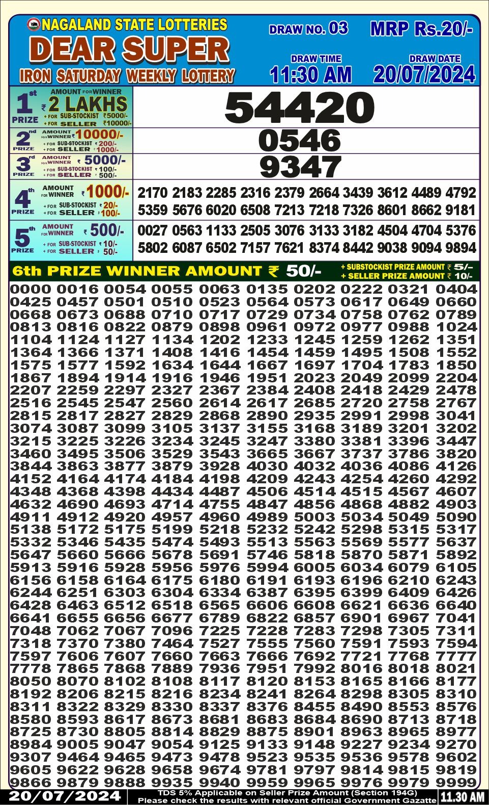 Dear Lottery Result 05.11.25 6PM Today Dear Day Result