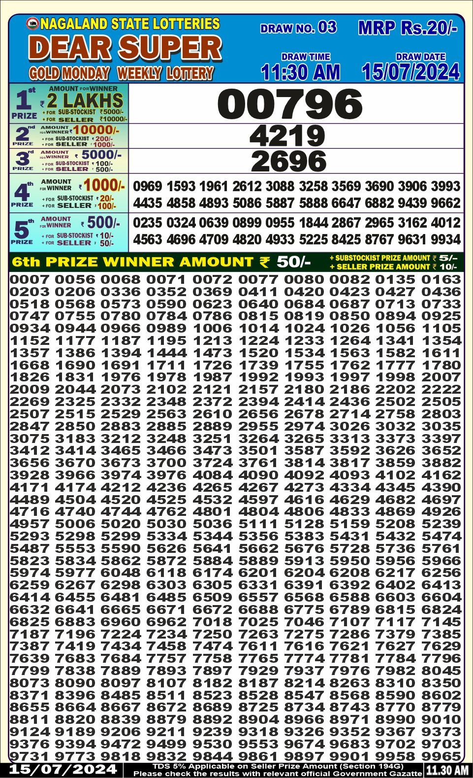 Dear Lottery Result 05.11.25 6PM Today Dear Day Result