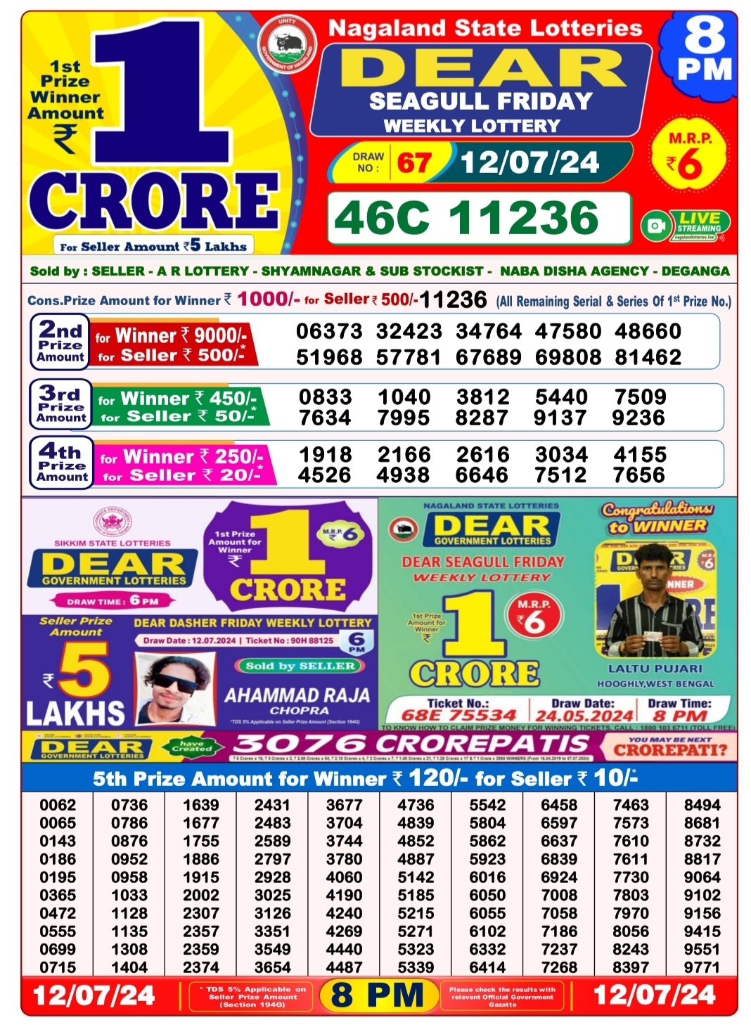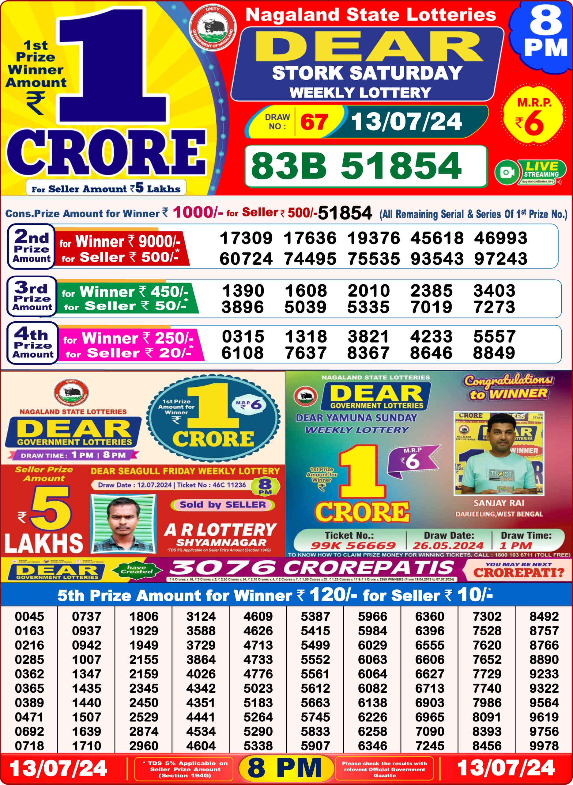 Dear Lottery Result Today 1 PM 6 PM 8 PM Lottery Sambad