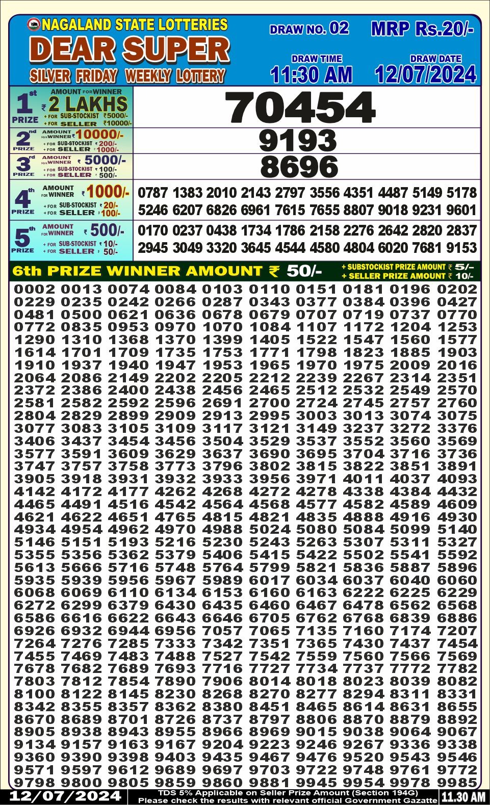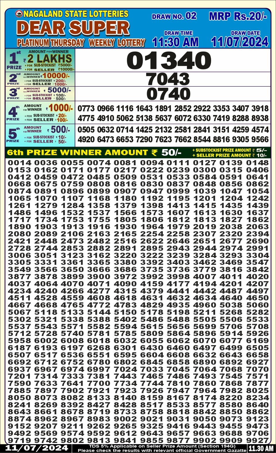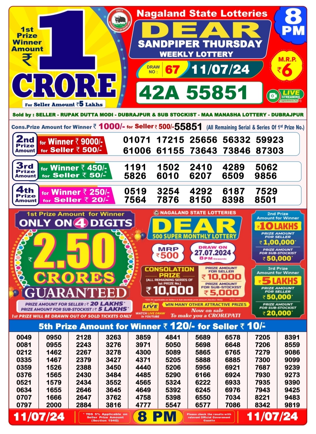 Dear Lottery Result 05.11.25 6PM Today Dear Day Result