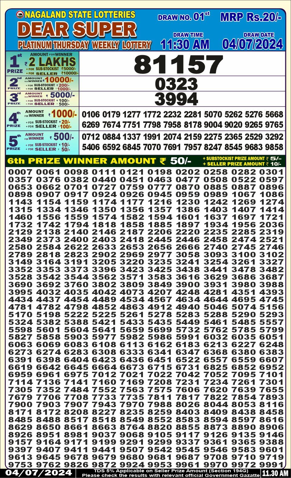 Dear Lottery Result 05.11.25 6PM Today Dear Day Result