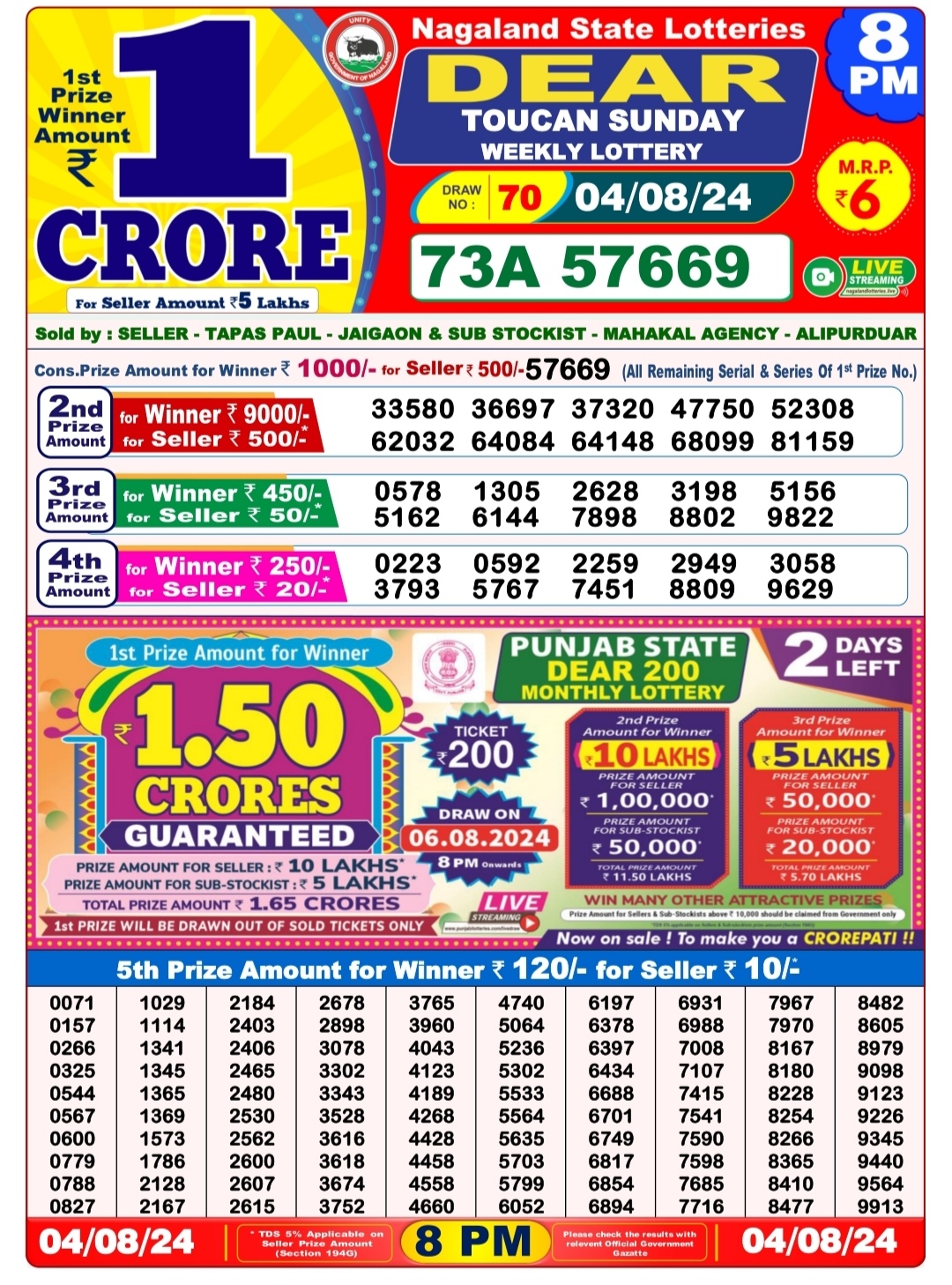 Dear Lottery Result Today 1 PM 6 PM 8 PM Lottery Sambad