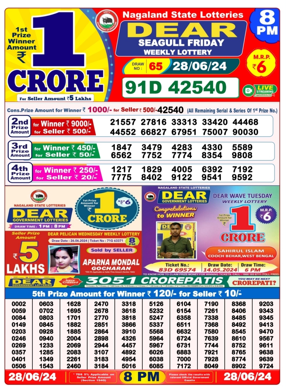 Dear 8pm lottery result 28-6-24