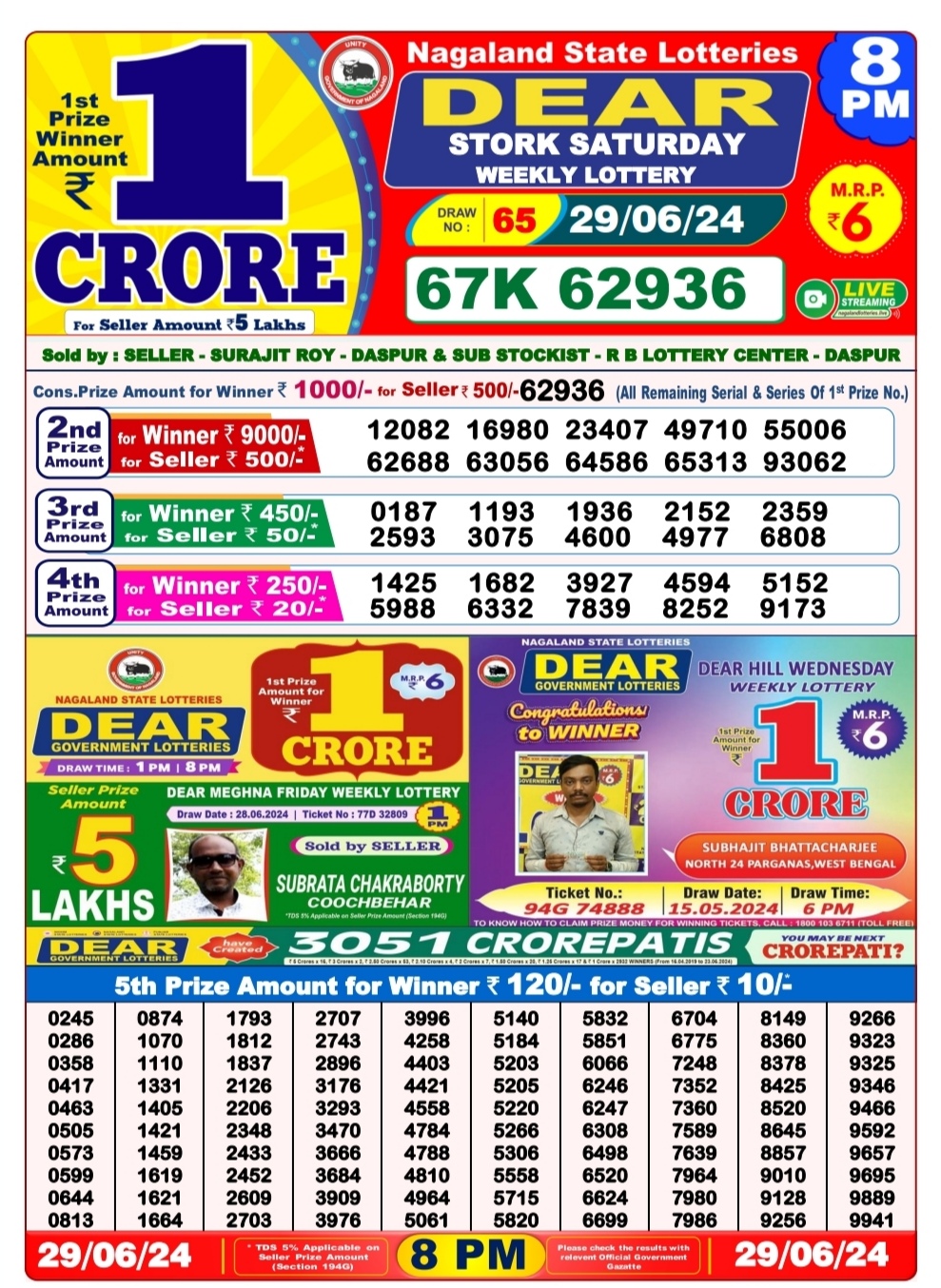 Dear 6pm lottery result 29-6-24