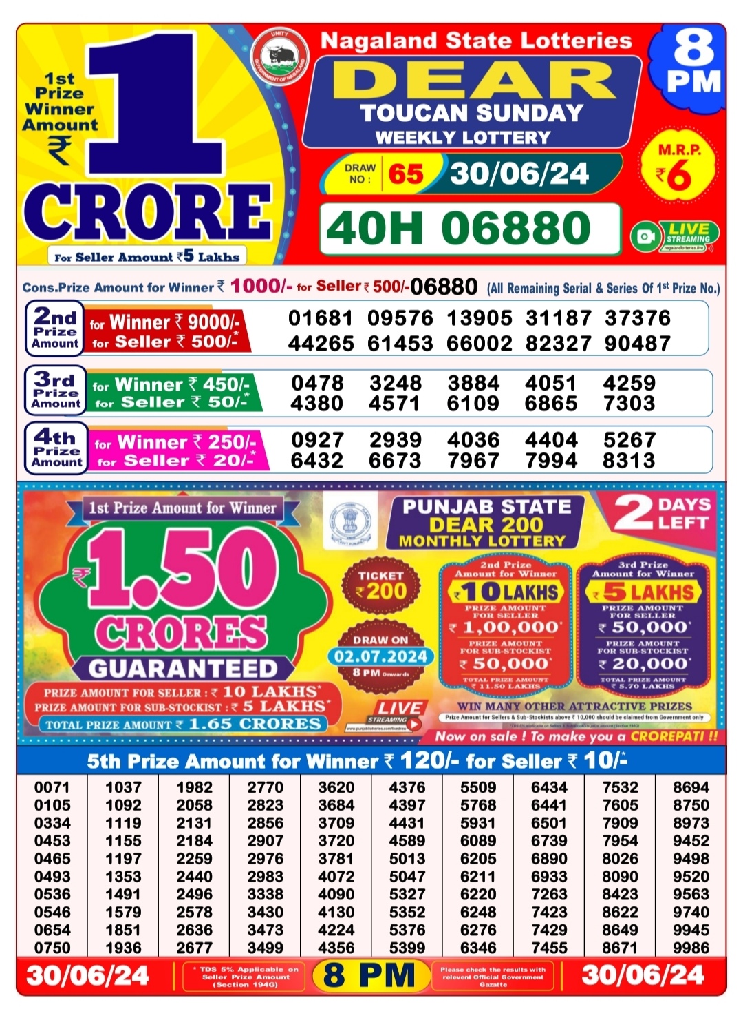 Dear 6pm lottery result 30-6-24