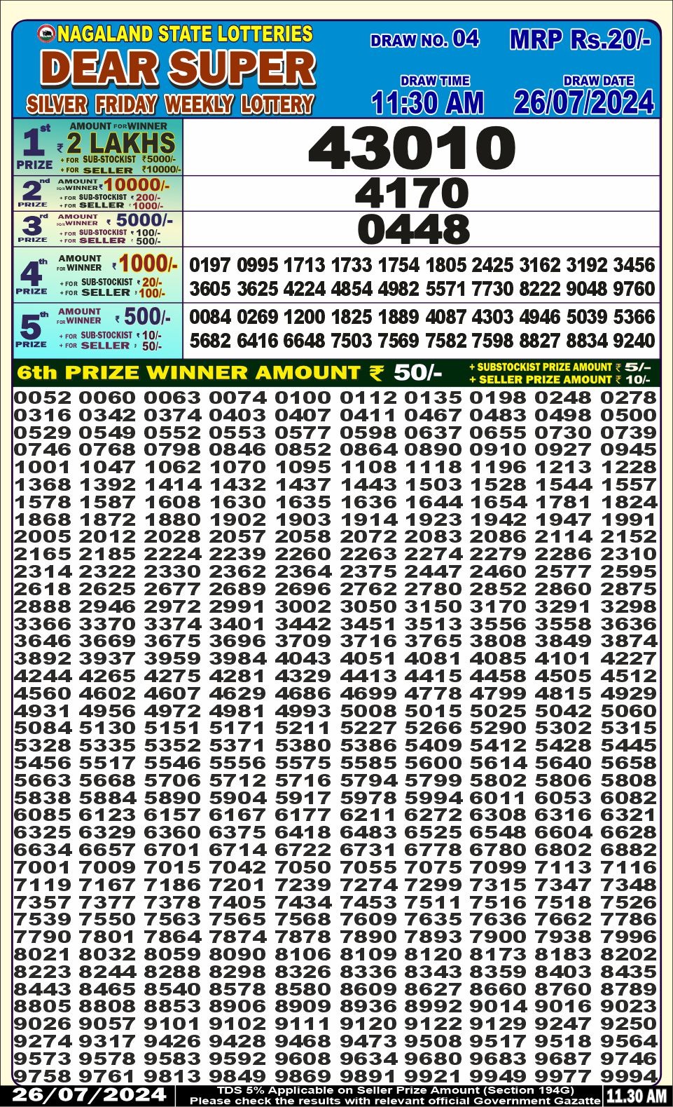 Dear Lottery Result 26.12.25 6PM Today Dear Day Result