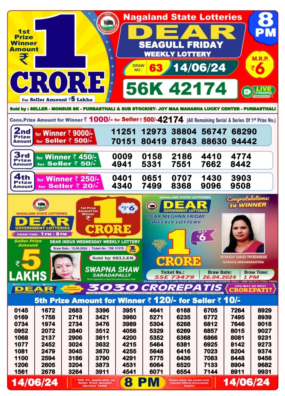Dear 6pm lottery result 14-6-24