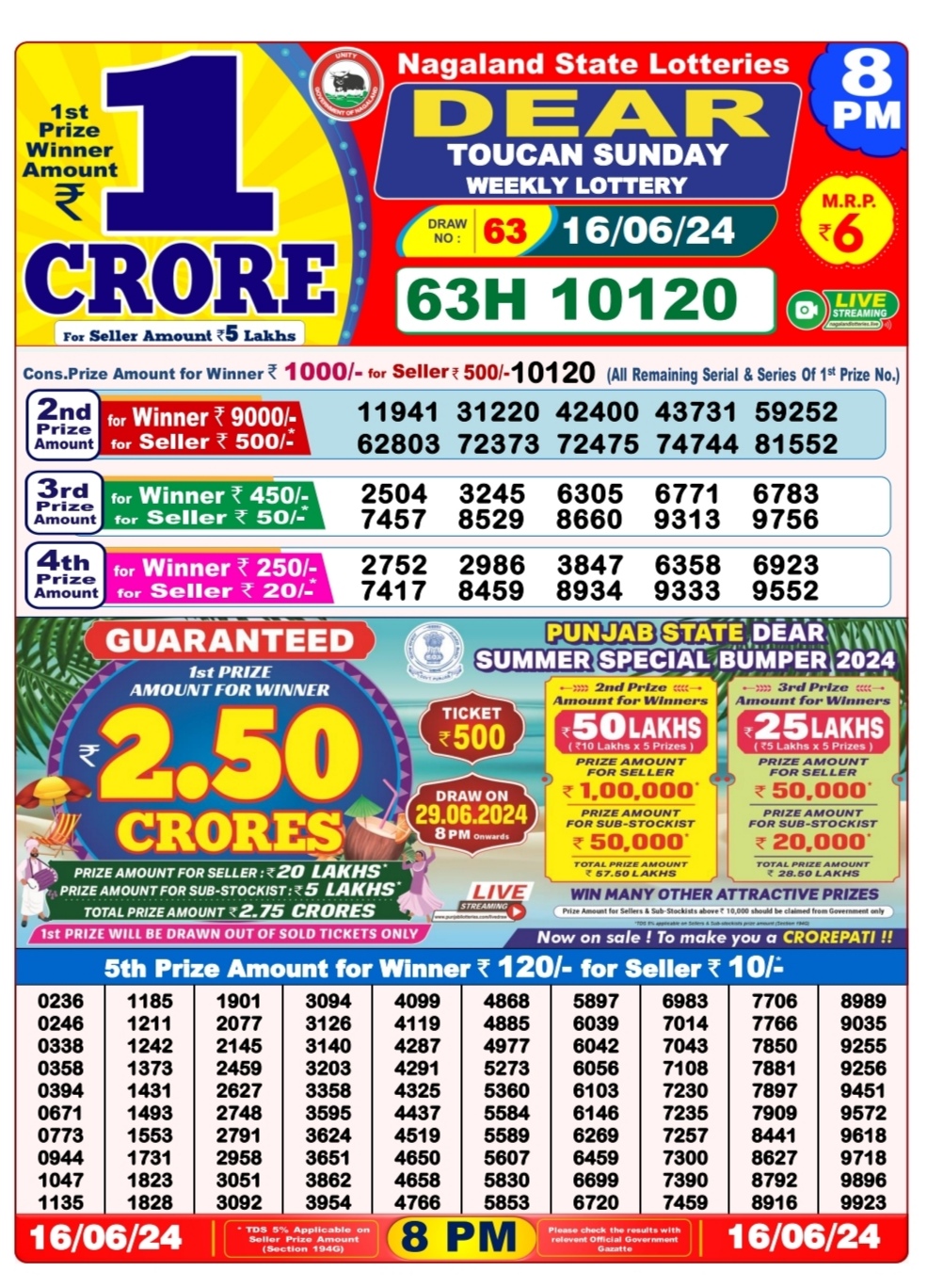 Dear10 7pm lottery result 16-6-24