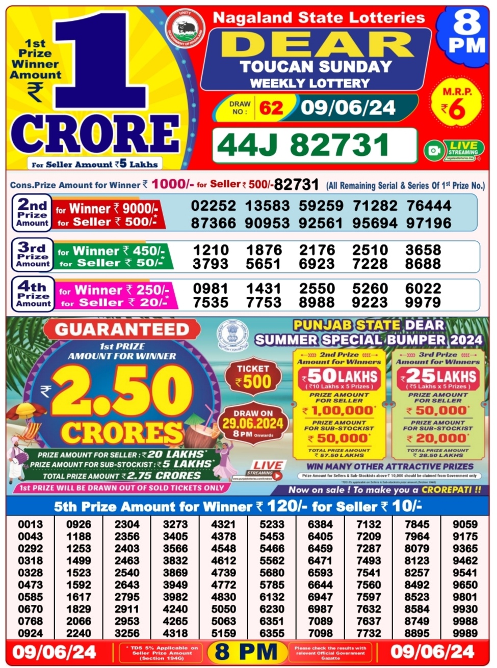 Punjab State Dear 50 6 PM Lottery Result 03.11.25