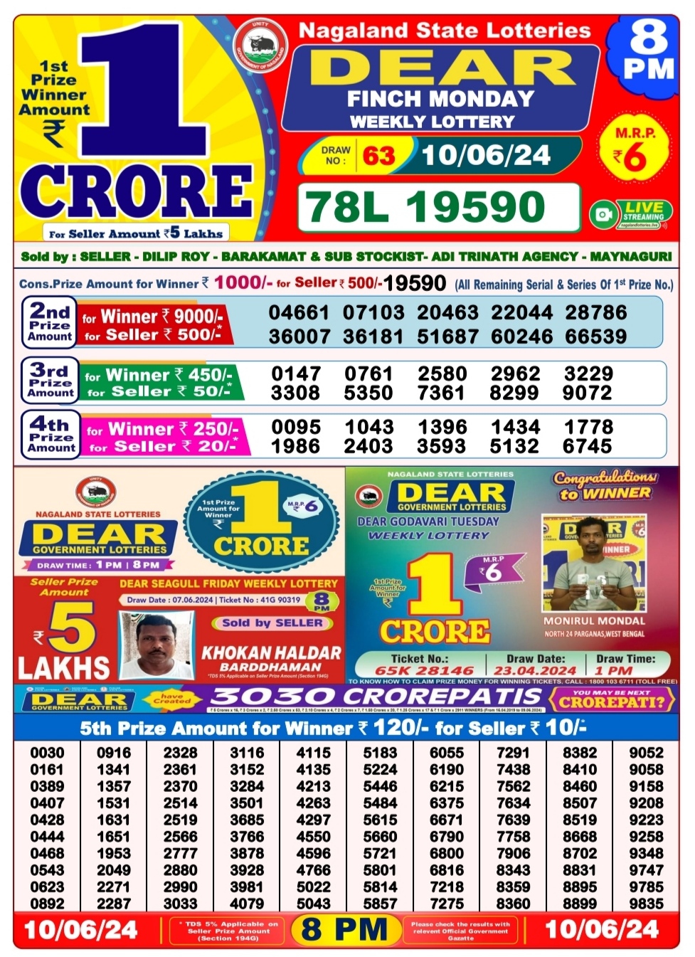 Dear Lottery Result Today 1 PM 6 PM 8 PM Lottery Sambad