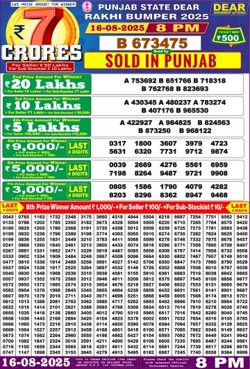 Punjab State Dear Rakhi Bumper Lottery Result 16.08.25