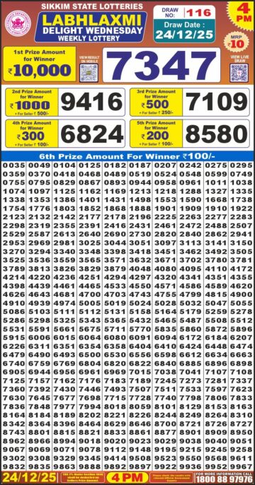 Labh Laxmi Lottery Result Today 4PM 24.12.25