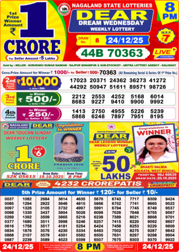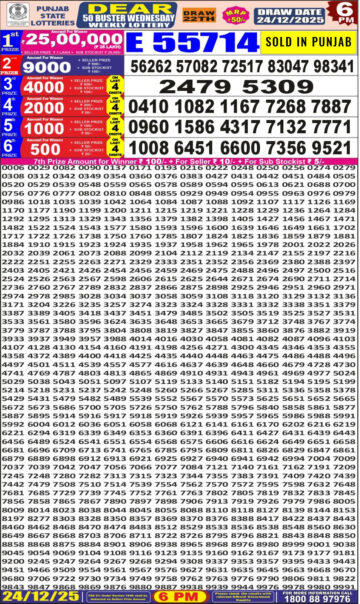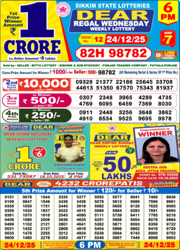 Dear Lottery Result 24.12.25 6PM Today Dear Day Result