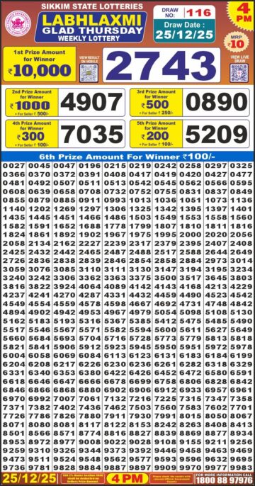 Labh Laxmi Lottery Result Today 4PM 25.12.25