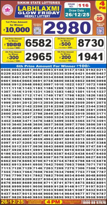 Dear Lottery Result 26.12.25 6PM Today Dear Day Result