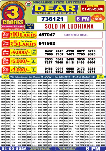 Dear MahaShivratri Bumper Lottery 6pm Result 21.02.26 Declared