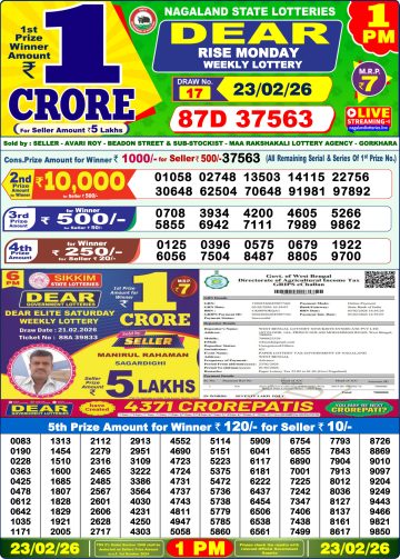 Dear Lottery Result 23.02.26 6PM Today Dear Day Result