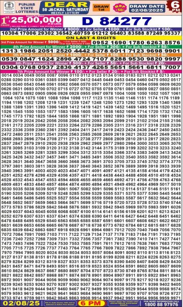 Punjab State Dear 50 6 PM Lottery Result 02.08.25