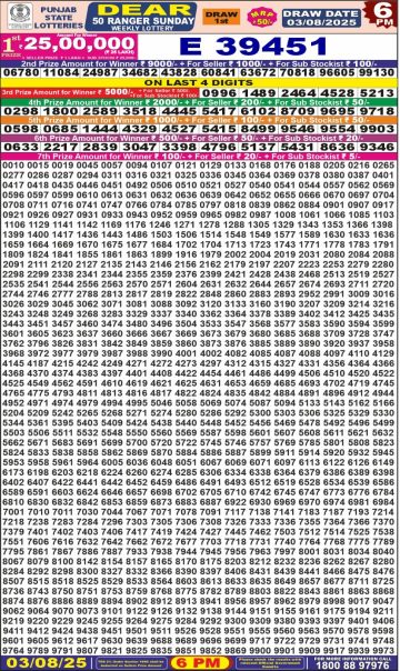 Punjab State Dear 50 6 PM Lottery Result 03.08.25