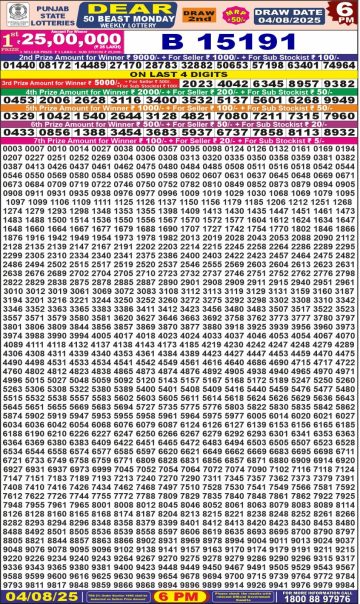 Dear Lottery Result 04.08 25 6PM Today Dear Day Result