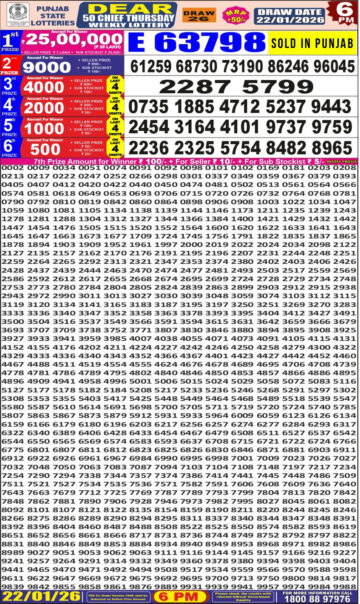 Dear Lottery Result 22.01.26 6PM Today Dear Day Result