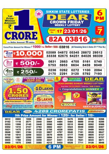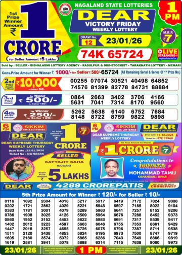 Dear Lottery Result 23.01.26 6PM Today Dear Day Result